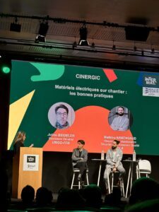 Mathieu Armengaud, Responsable maintenance, sécurité et environnement, est intervenu dans le cadre de CINERGIC, pour partager les bonnes pratiques et retours d’expérience sur la transition énergétique des chantiers : intégration des matériels électriques, soutien à l’investissement et perspectives sur les biocarburants.